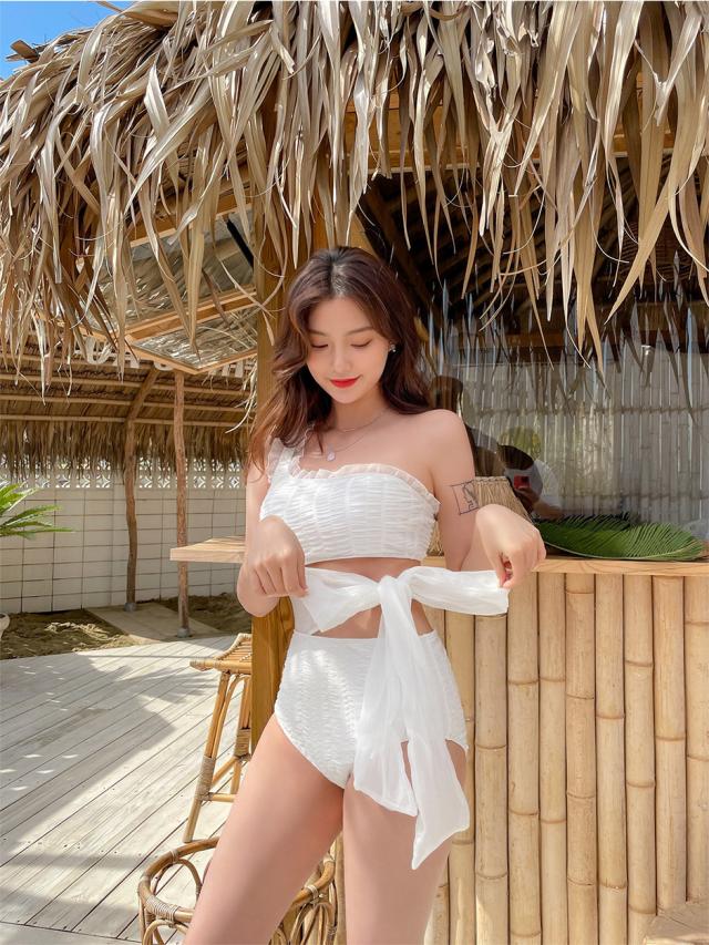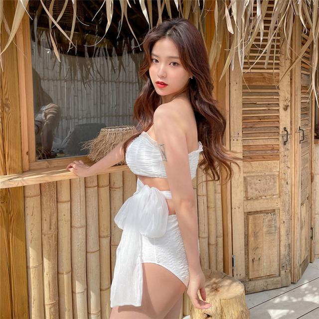 ウエストを覆う大きめリボンで、ビキニよりも露出を控えめに!