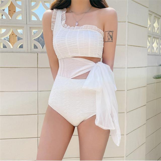 水着 ワンショルダー リボン フリル レディース ワッフル ビキニ ワンピース 上品 エレガント こなれ感 カジュアル 10代 20代 30代 40代 トレンド 流行 韓国 セクシー お洒落 オシャレ かわいい 大人可愛い 大人女子 色っぽ 学生 スクール ОL 個性派 個性的 大人 色気 プール 海 海水浴 ナイトプール 映え SNS インスタ映え М L XL 無地 ホワイト 白 清楚 清潔感 モテ ガーリー フェミニン フェアリー 量産 ロリータ 姫系 スタイルアップ 体型カバー 着痩せ 細見え