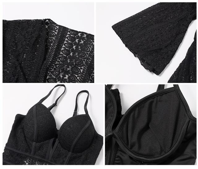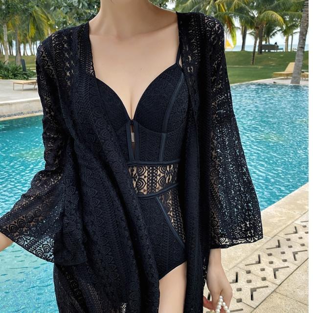 水着 ワンピース 2点セット カーディガン 2色 レディース 総レース 上品 きれいめ エレガント こなれ感 カジュアル 10代 20代 30代 40代 50代 トレンド 流行 韓国 セクシー お洒落 オシャレ かわいい 大人可愛い 大人女子 色っぽ 学生 スクール ОL 個性派 個性的 大人 色気 プール 海 海水浴 ナイトプール 映え SNS インスタ映え S М L XL 黒 ブラック レッド 赤 モテ スタイルアップ 体型カバー 着痩せ 透け感 シアー 羽織 UV 日焼け 高級感