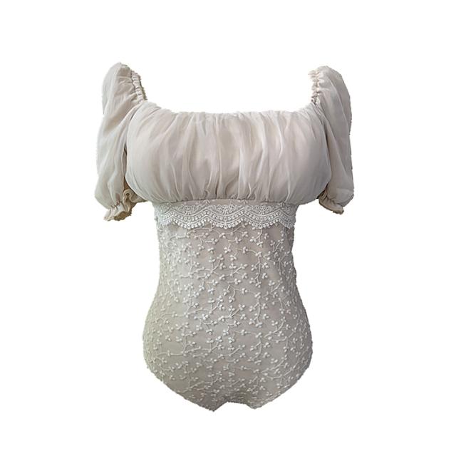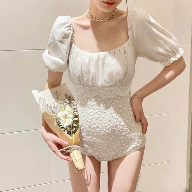 水着 ワンピース 半袖 フリル レース レディース シフォン 透け感 パフスリーブ 韓国 トレンド 流行 シアー 肌見せ 学生 ОL スクール 海 海水浴 ビーチ スイミング 白 ホワイト ベージュ 10代 20代 30代 40代 かわいい 大人可愛い 大人女子 オシャレ お洒落 セクシー キュート ガーリー フェミニン フェアリー 量産 ロリータ 姫系 大きいサイズ М L XL 個性的 個性派 ハイウエスト 脚長 美脚 スタイルアップ 新作 2022 映え SNS パッド入り 総レース