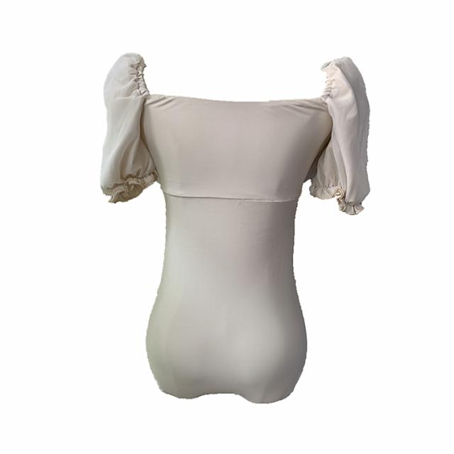 水着 ワンピース 半袖 フリル レース レディース シフォン 透け感 パフスリーブ 韓国 トレンド 流行 シアー 肌見せ 学生 ОL スクール 海 海水浴 ビーチ スイミング 白 ホワイト ベージュ 10代 20代 30代 40代 かわいい 大人可愛い 大人女子 オシャレ お洒落 セクシー