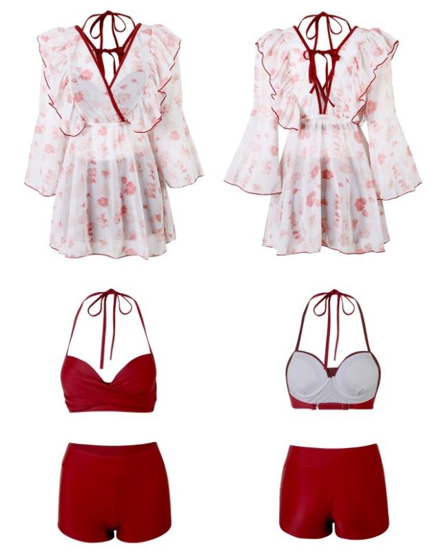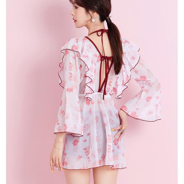 水着 ビキニ 2点セット トップス 羽織 ガウン レディース レース フリル 長袖 きれいめ エレガント こなれ感 カジュアル 10代 20代 30代 40代 50代 トレンド 流行 韓国 セクシー お洒落 オシャレ かわいい 大人可愛い 大人女子 色っぽ 学生 スクール ОL 個性派 個性的 大人 色気 プール 海 海水浴 ナイトプール 映え SNS М L XL 2XL 赤 レッド スタイルアップ 体型カバー 着痩せ 透け感 シアー UV 日焼け 高級感 クロスデザイン ハイウエスト リボン