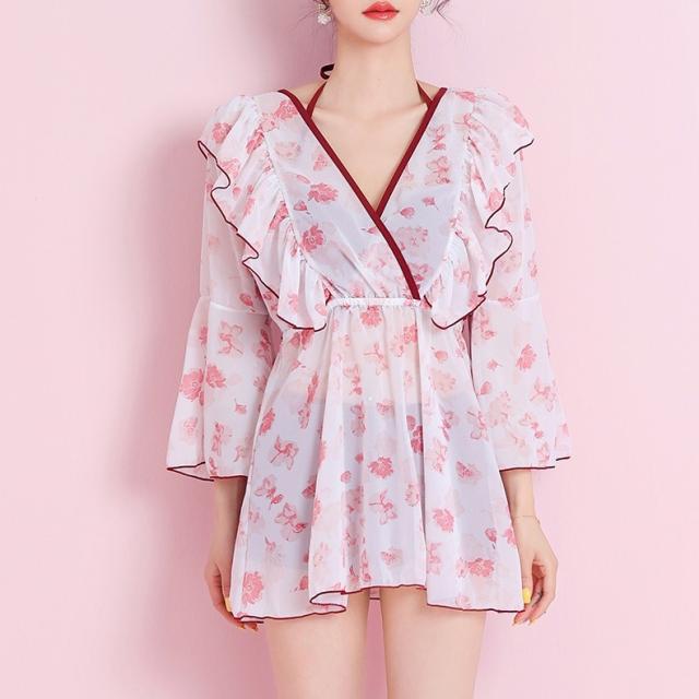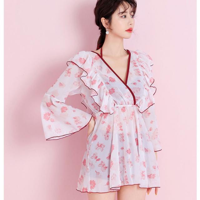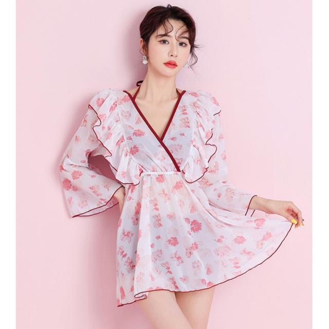 水着 ビキニ 2点セット トップス 羽織 ガウン レディース レース フリル 長袖 きれいめ エレガント こなれ感 カジュアル 10代 20代 30代 40代 50代 トレンド 流行 韓国 セクシー お洒落 オシャレ かわいい 大人可愛い 大人女子 色っぽ 学生 スクール ОL 個性派 個性的 大人