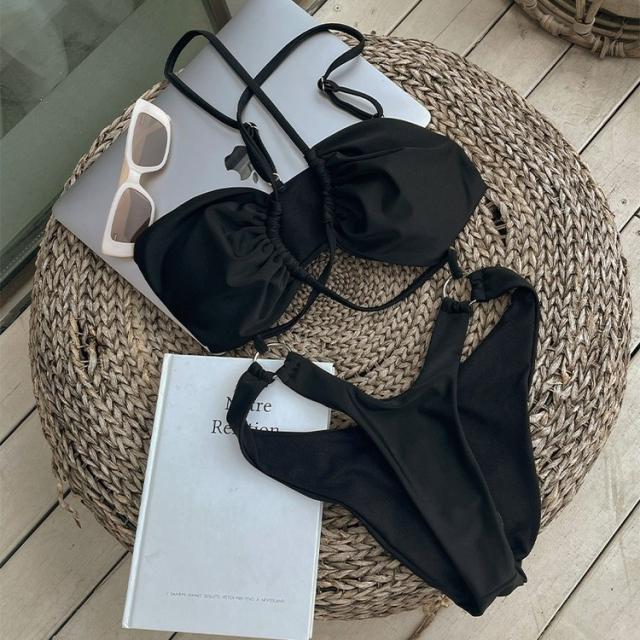 水着 ビキニ 紐 ホルターネック レディース こなれ感 シンプル カジュアル 10代 20代 30代 40代 トレンド 流行 韓国 セクシー ギャル お洒落 オシャレ かわいい 大人可愛い 大人女子 色っぽ 学生 スクール ОL 個性派 個性的 大人 色気 プール 海 海水浴 ナイトプール 映え SNS インスタ映え М L XL 大きいサイズ 無地 ブラック 黒 脚長 美脚 谷間 デコルテ 華奢 グラビア モデル 海外 新作 2022 金具 サークル シルバー