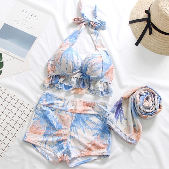 水着 ビキニ 2点セット パレオ レディース フリル リボン ホルターネック 上品 きれいめ エレガント こなれ感 カジュアル 10代 20代 30代 40代 50代 トレンド 流行 韓国 セクシー お洒落 オシャレ かわいい 大人可愛い 大人女子 色っぽ 学生 スクール ОL 個性的 大人 色気 プール 海 海水浴 ナイトプール 映え SNS М L XL 2XL ブルー 青 水色 スタイルアップ 体型カバー 着痩せ 透け感 シアー 高級感 クロスデザイン ハイウエスト 盛り 谷間 ボタニカル 花柄