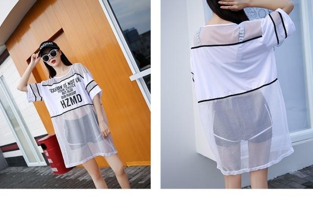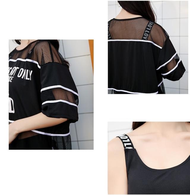 2色カラバリ、シースルーTシャツ付きタンキニ水着3点セット。