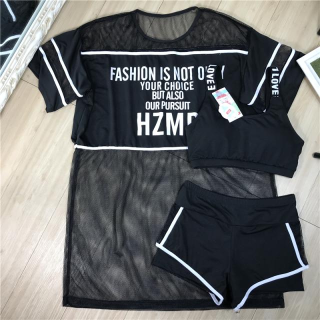 水着 スイムウエア レディース タンキニ水着 体型カバー水着 ショートパンツ 短パン 羽織り シースルーTシャツ 半袖 5分袖 五分袖 セパレート 二の腕カバー 透け感 3点セット シンプル カジュアル ナチュラル おしゃれ お洒落 存在感 クール スタイリッシュ メンズライク