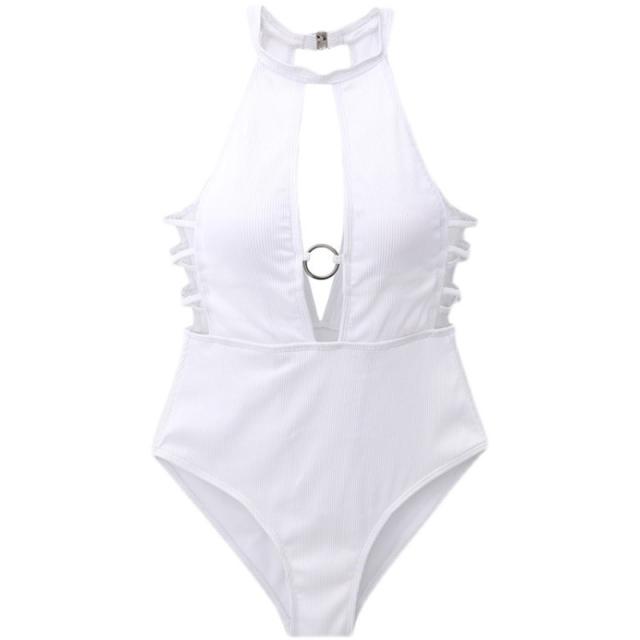水着 スイムウエア レディース ワンピース水着 ホルターネック サイドオープン クロスストラップ カットアウト リング クロス バックコンシャス バックシャン 編み上げ 谷間魅せ 胸元 盛れる セクシー sexy シンプル おしゃれ お洒落 大人っぽい 大人 女っぽ クール