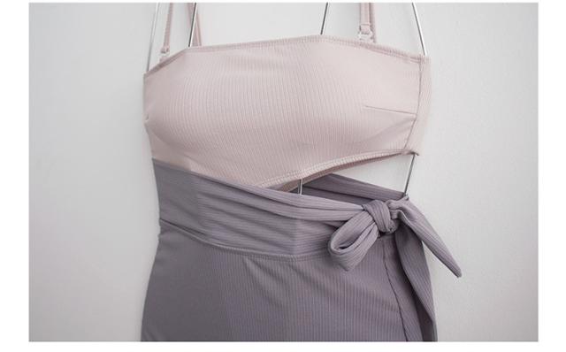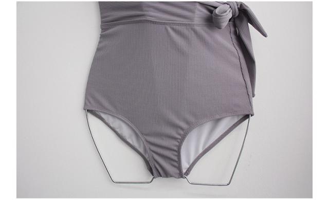 アシンメトリーなカットアウトとサイドリボンが体型カバー効果も◎