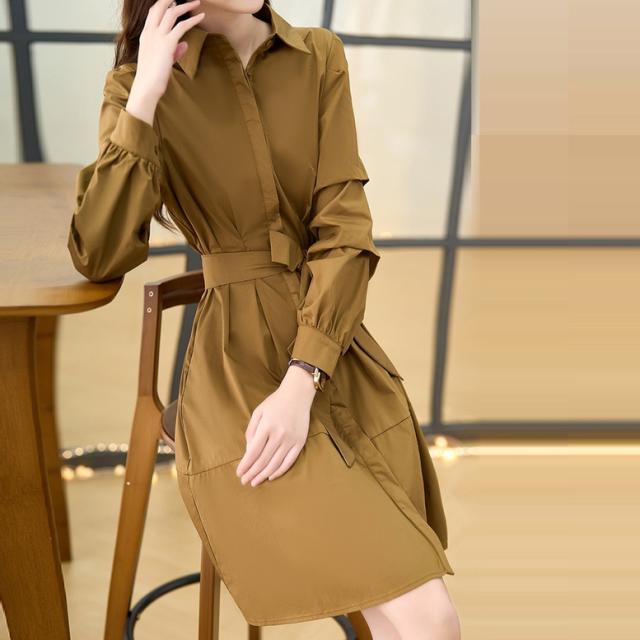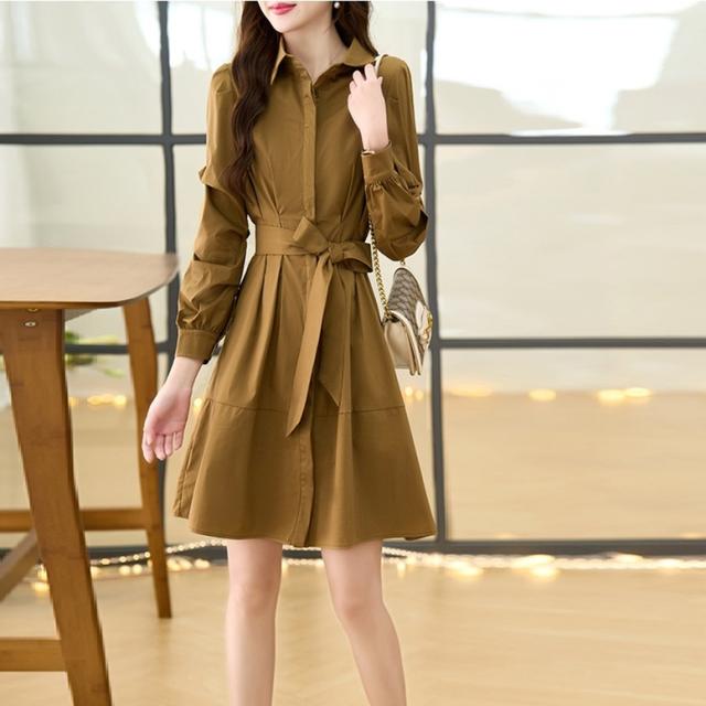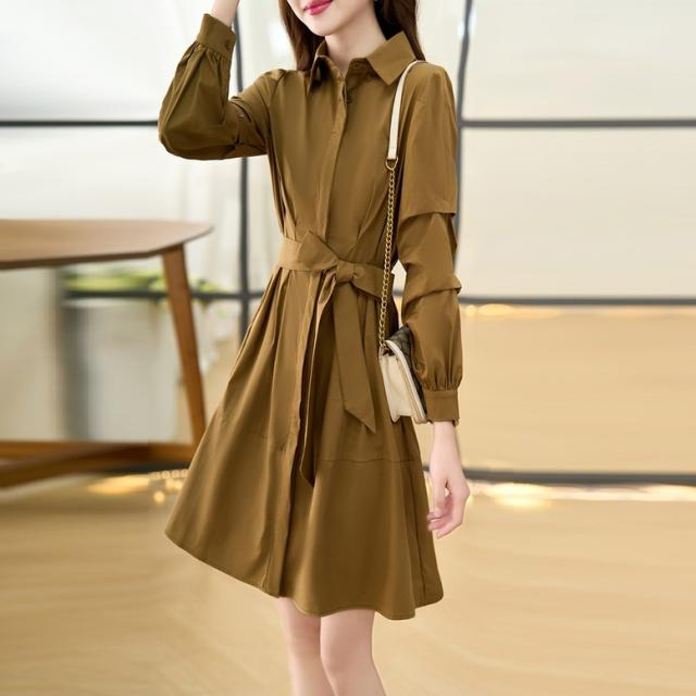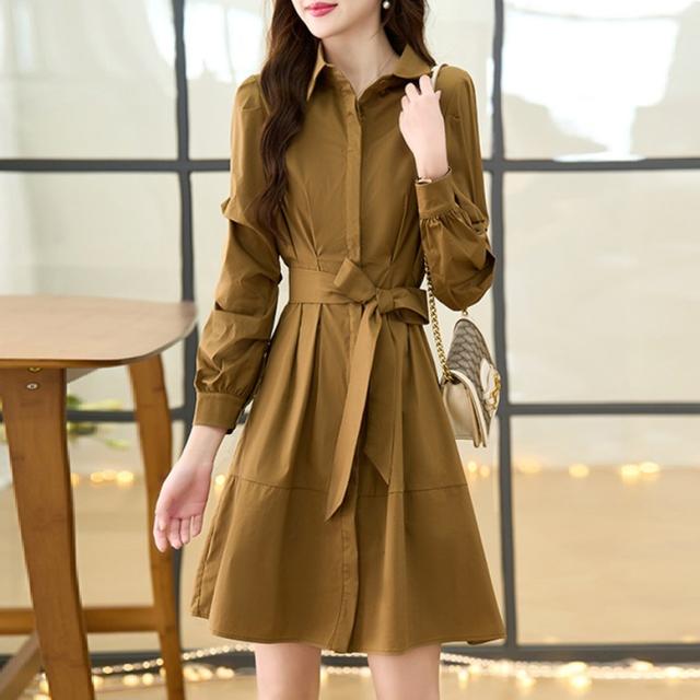 ワンピース ミディアムシャツワンピース レディース シャツワンピース ひざ上丈 ショート丈 ウエストリボン シャツドレス 襟付き 長袖 スリム 無地 フェミニン 茶色 ブラウン 大人可愛い きれいめ 上品 エレガント フォーマル ガーリー 大人女子 おしゃれ シンプル カジュアル 春 夏 秋 冬 二次会 お呼ばれ ビジネス オフィス OL 通勤 学生 通学 デート お出かけ パーティー イベント 女子会 休日 旅行 体型カバー 美脚 モテ 普段使い 定番 トレンド ゆったり インスタ映え ベイクドカラー