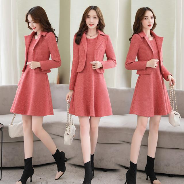 セットアップ レディース スーツ ジャケット ノースリーブワンピース ミニ丈 ラウンドネック フレア Aライン 2点セット かわいい 大人可愛い きれいめ シンプル 大人 上品 おしゃれ お洒落 大人女子 エレガント M L XL 2XL 大きいサイズ レッド 赤 ピンク ブラック 黒 春 秋