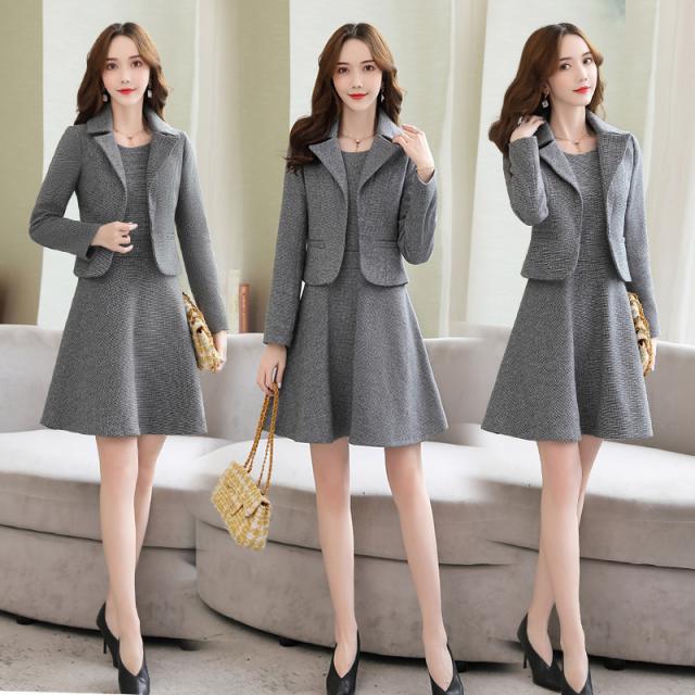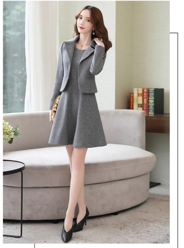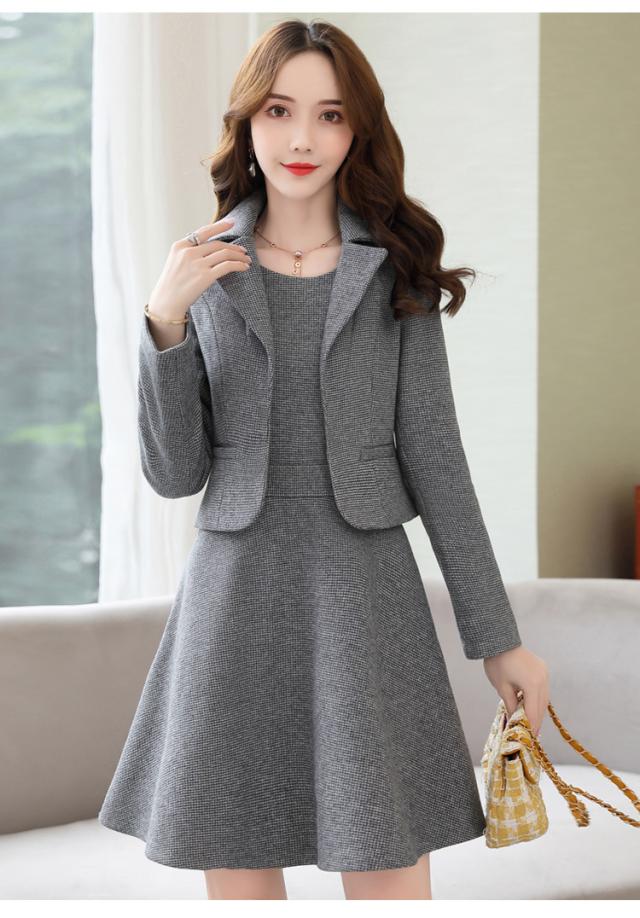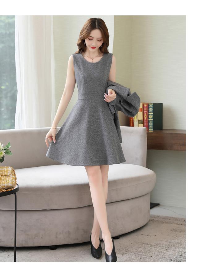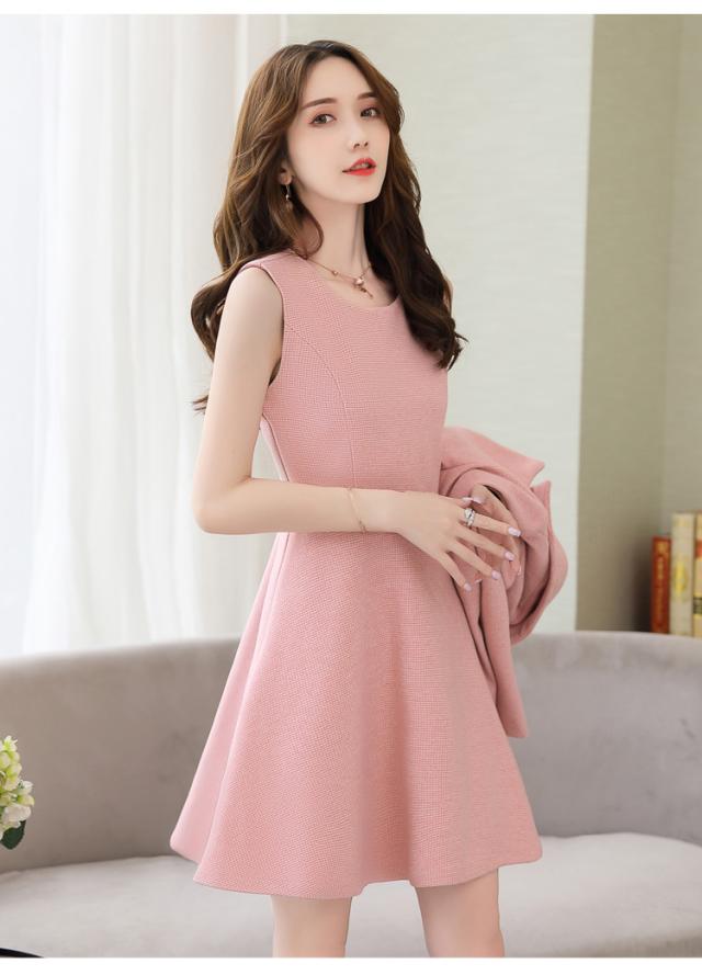 ショートジャケットとノースリーブミニワンピース。