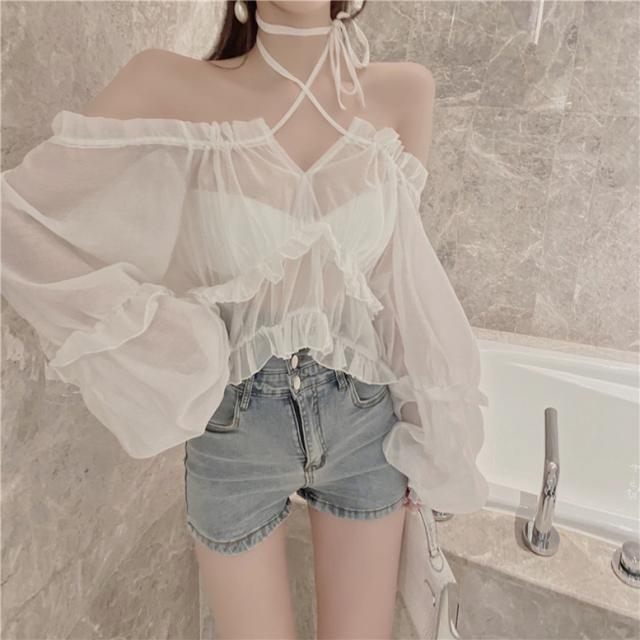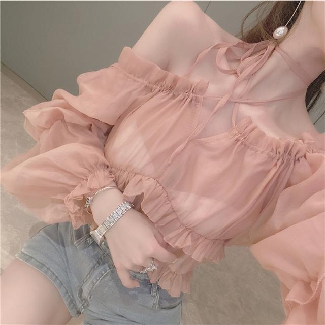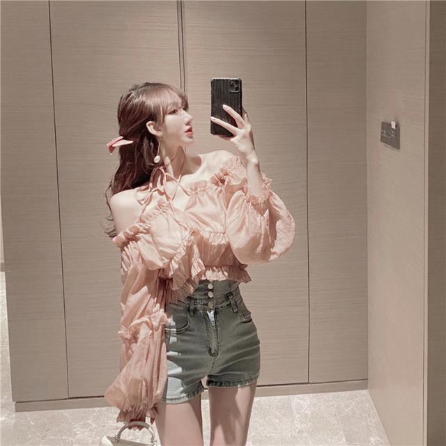 フリルシャーリングブラウス トップス レディース ブラウス シャツ フリル ボリュームスリーブ シフォンブラウス シアーブラウス 長袖 オフショルダー シースルー クロップドブラウス リボン 無地 ピンク ホワイト 白 大人可愛い きれいめ 上品 エレガント ガーリー ルーズ キュート 大人女子 おしゃれ カジュアル 春 夏 秋 冬 二次会 オフィス OL 通勤 学生 通学 デート お出かけ パーティー イベント 女子会 休日 旅行 体型カバー モテ 普段使い 定番 トレンド ゆったり インスタ映え