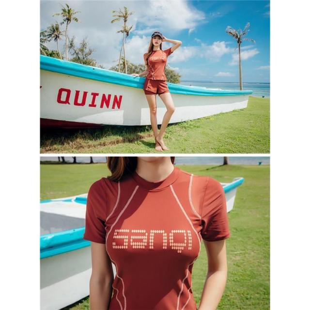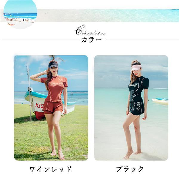 水着 スイムウエア レディース フィットネス水着 セパレート 体型カバー水着 ショートパンツ 短パン Tシャツ ママ水着 フィットネス 大人可愛い シンプル カジュアル ナチュラル 大人 おしゃれ お洒落 クール モード メンズライク マニッシュ かっこいい M L XL 2XL 3XL 大きいサイズ 黒 ブラック れんが色 ブリックレッド 無地 白ライン 英字ロゴ 10代 20代 30代 40代 50代 ミセス 春 夏 海 ビーチ プール リゾート 旅行 スポーツ ヨガ 二の腕カバー