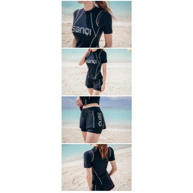 水着 スイムウエア レディース フィットネス水着 セパレート 体型カバー水着 ショートパンツ 短パン Tシャツ ママ水着 フィットネス 大人可愛い シンプル カジュアル ナチュラル 大人 おしゃれ お洒落 クール モード メンズライク マニッシュ かっこいい M L XL 2XL 3XL