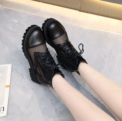 靴 ブーツ サマー メッシュ 厚底 ショート シューズ レディース かわいい 大人可愛い 韓国 トレンド 流行 ガーリー 個性的 個性派 量産 地雷 エレガント 映え SNS インスタ 10代 20代 30代 40代 無地 黒 ブラック 白 上品 大人女子 こなれ感 主役 存在感 クール シック モード