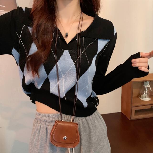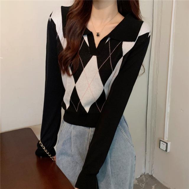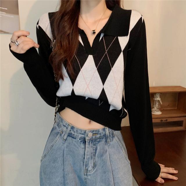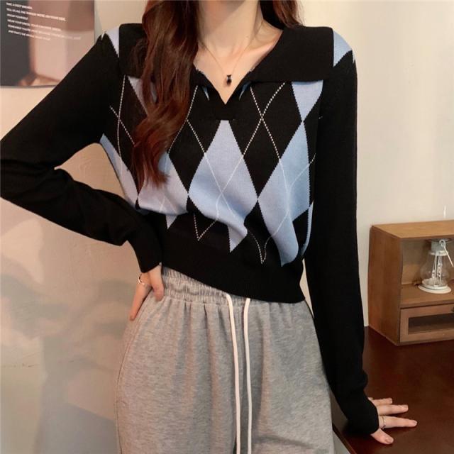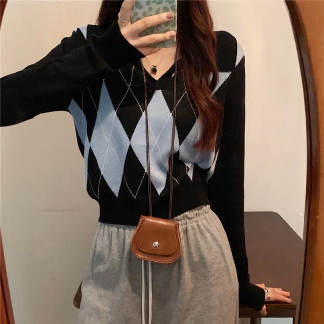 アーガイル柄のニットトップスです。
