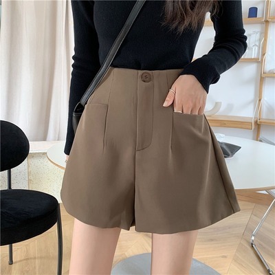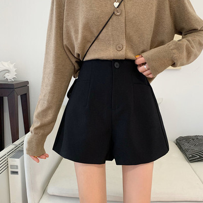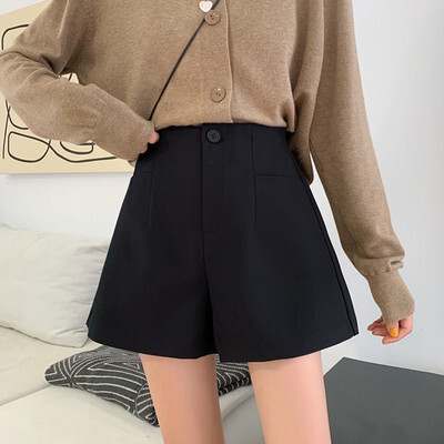 ボトムス ハーフパンツ 2色 Aライン 膝上 ハイウエスト レディース プラスサイズ くすみカラー キュロット 半パン ショートパンツ ワイド こなれ感 シンプル カジュアル 無地 黒 ブラック 茶色 ブラウン 10代 20代 30代 40代 50代 ポケット お洒落 オシャレ かわいい