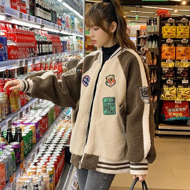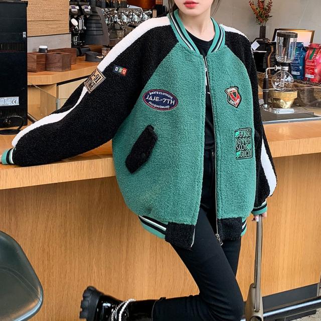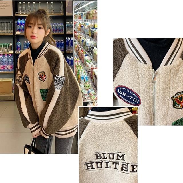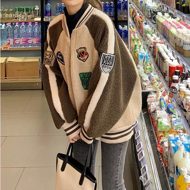 配色ワッペンボアブルゾン アウター レディース ジャケット ブルゾン スタジャン ボアブルゾン 配色ブルゾン ボアスタジャン ビッグシルエット ワッペン 刺繍 アメカジ 茶色 緑 黒 ベージュ×ブラウン グリーン×ブラック 大人可愛い きれいめ 上品 ガーリー マニッシュ ルーズ キュート レトロ カジュアル メンズライク かっこいい ボーイッシュ 春 夏 秋 冬 二次会 通勤 通学 デート お出かけ イベント アウトドア 体型カバー トレンド 暖かい 防寒 オーバーサイズ ゆったり インスタ映え