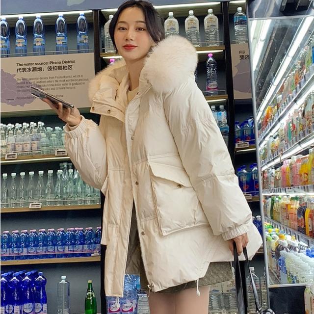 大きめのファーが目を惹かれるショートダウンコート