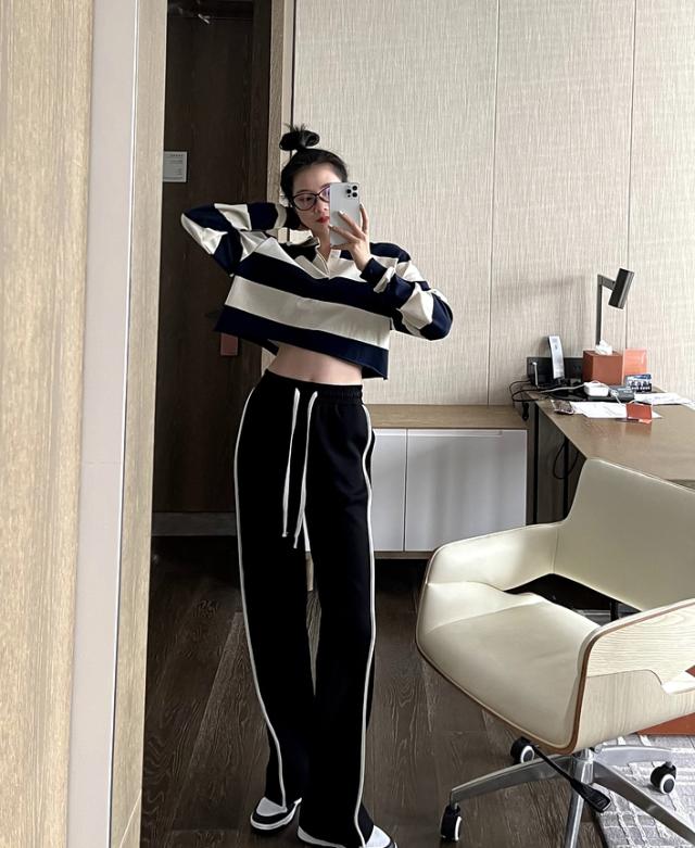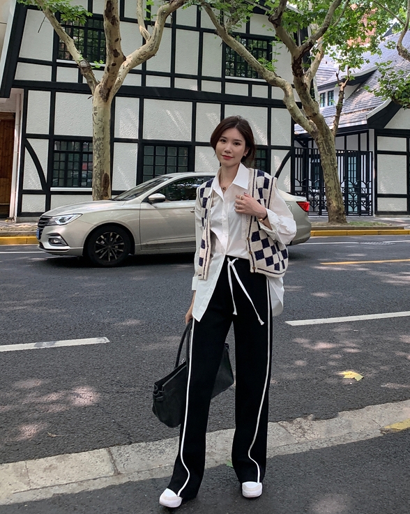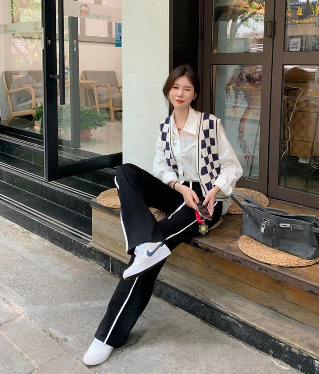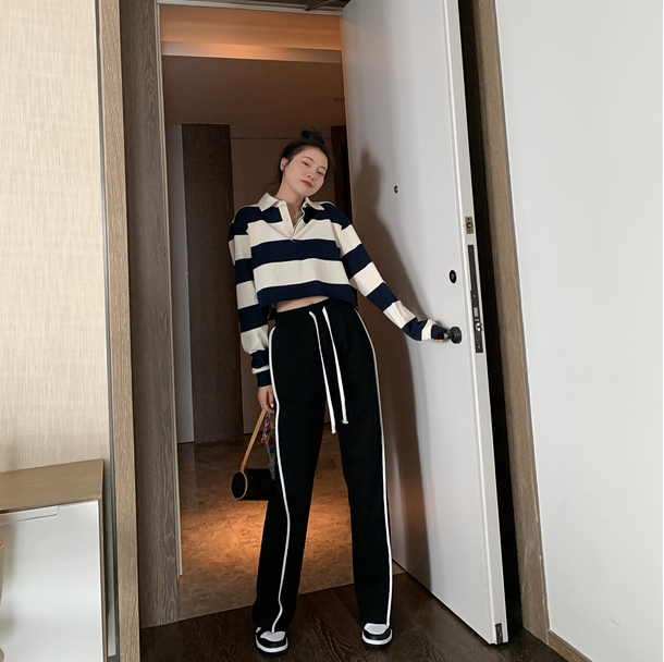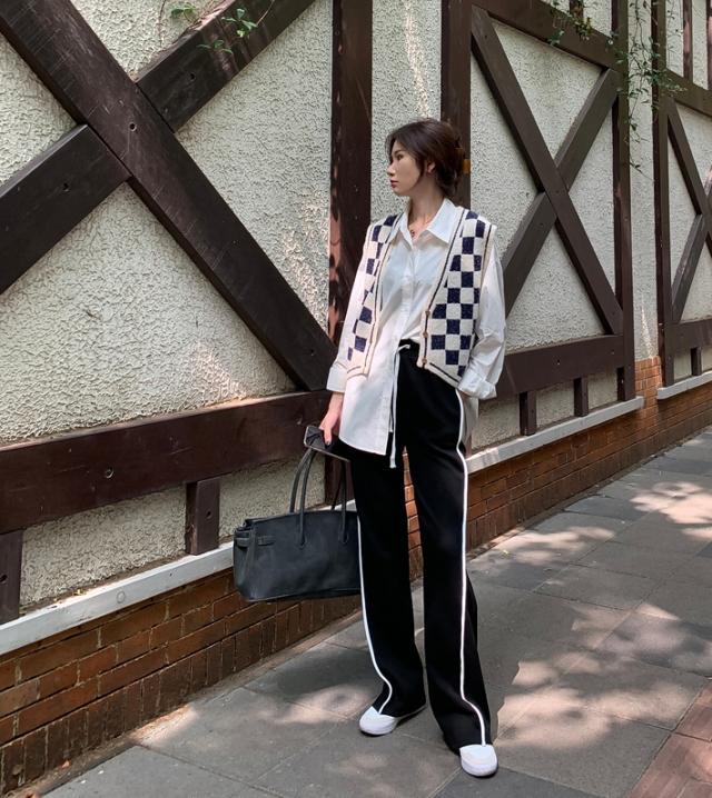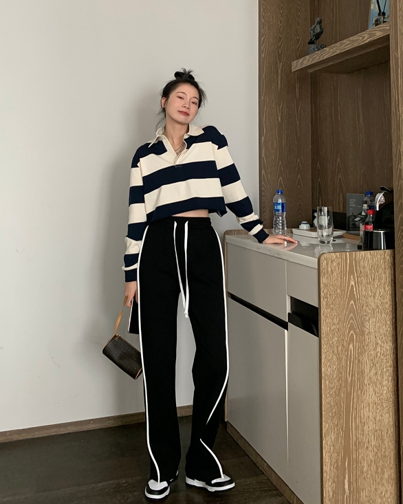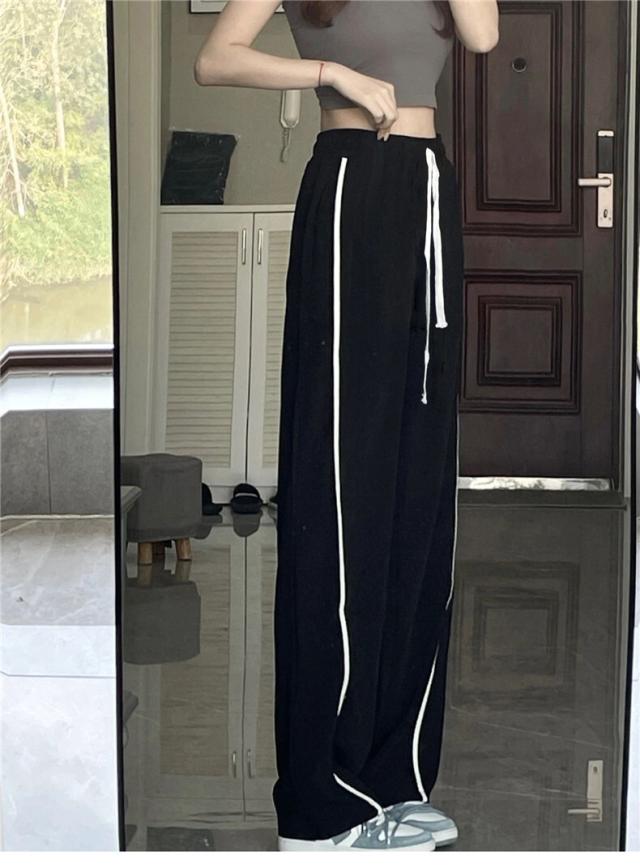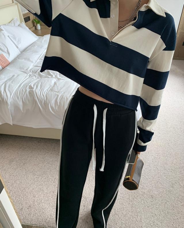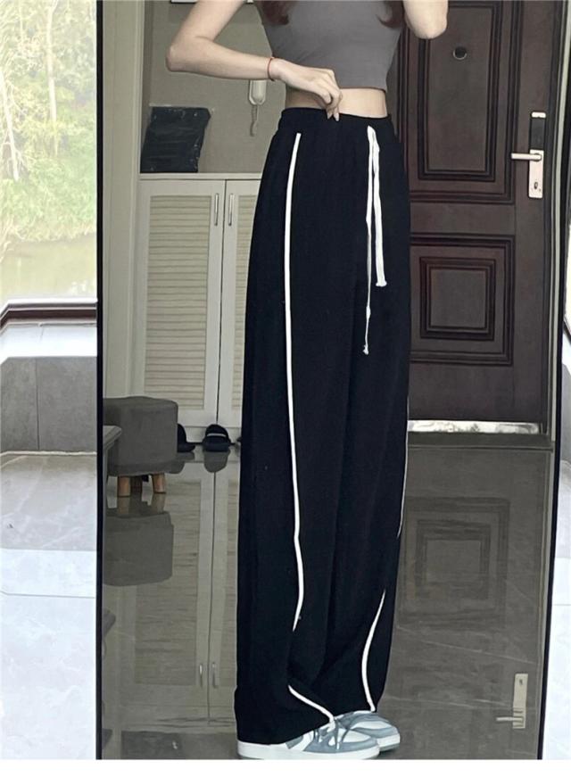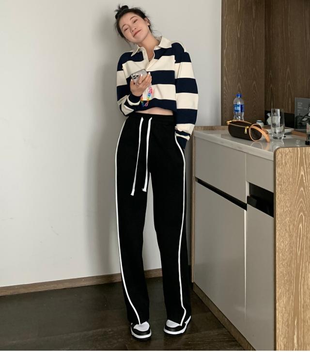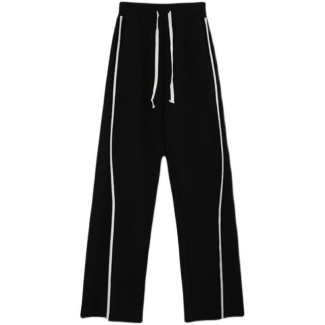 ブラックカラーの7サイズ展開ホワイトラインカジュアルパンツ。