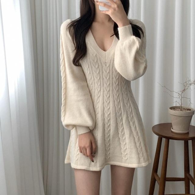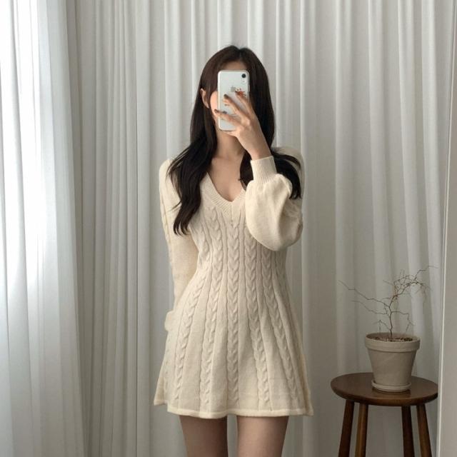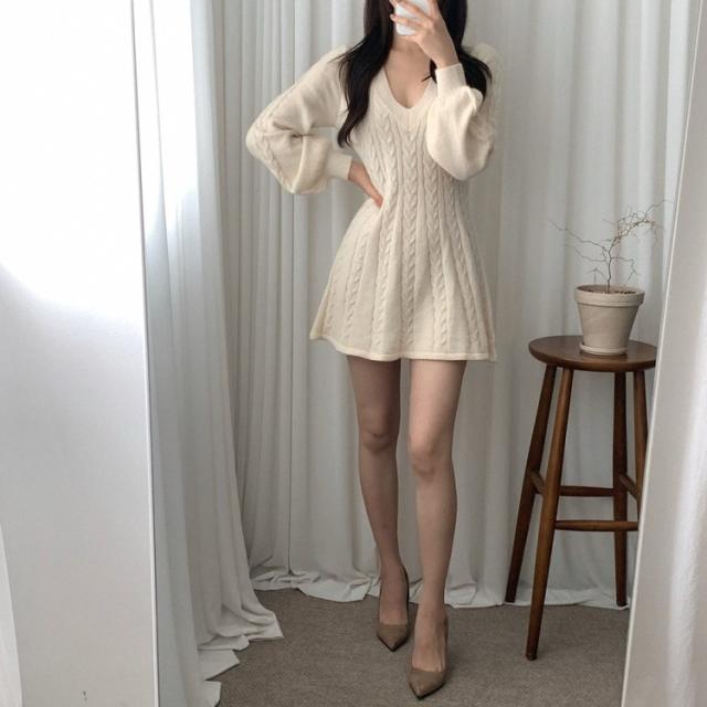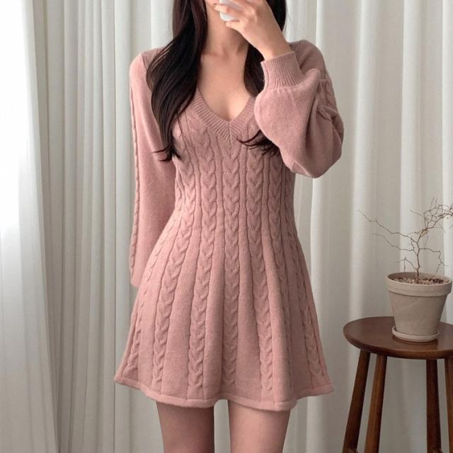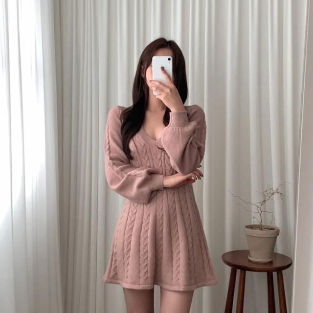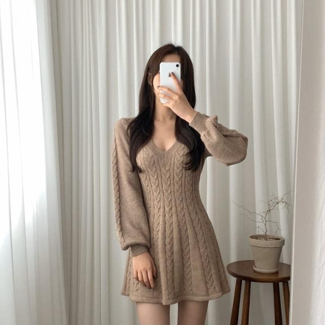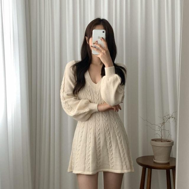 ワンピース ニット ケーブルニット ミニ丈 4色 Aライン レディース Vネック ショート丈 ギャル お洒落 オシャレ かわいい 大人可愛い セクシー シンプル カジュアル ボリューム 袖 無地 ピンク ホワイト 白 ベージュ ブラック 黒 ブラウン 茶色 膝上 10代 20代 30代 40代 春 秋 冬 韓国 トレンド 流行 シンプル カジュアル こなれ感 ルーズ ゆる デート モテ 女子会 休日 ショッピング 映え SNS 楽ちん とろみ 大人女子 体型カバー 着痩せ 細見え 華奢 鎖骨 デコルテ