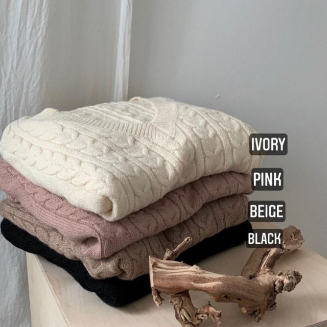 4色から選べるケーブルニットのワンピースです。
