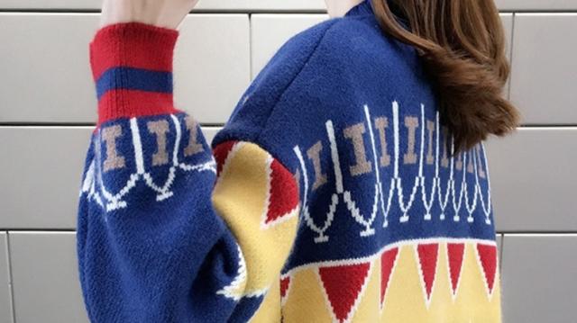 ノルディック柄のニットカーディガンです。