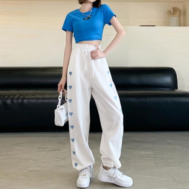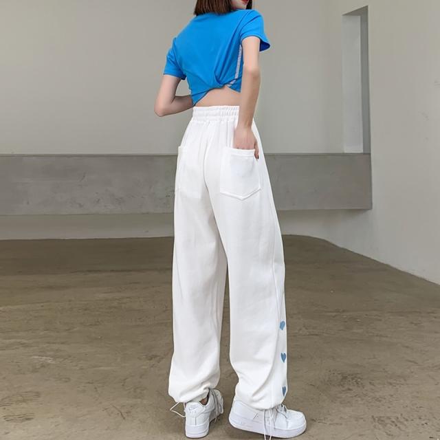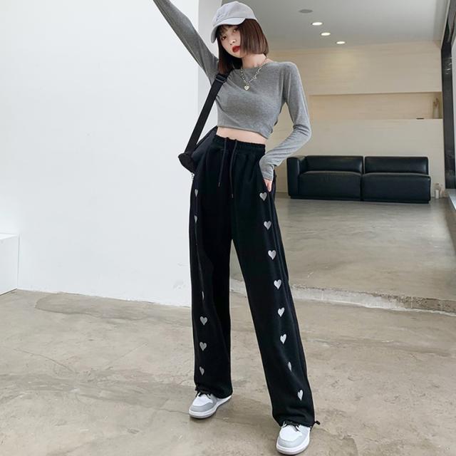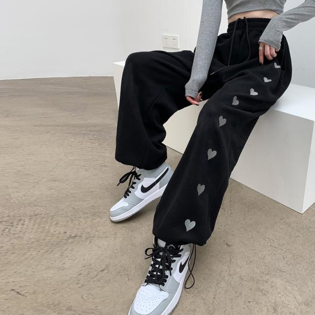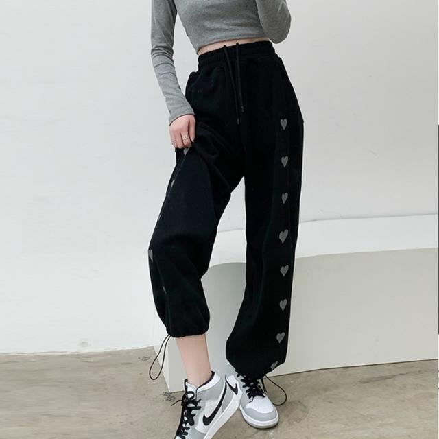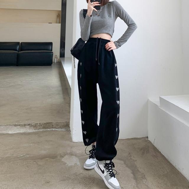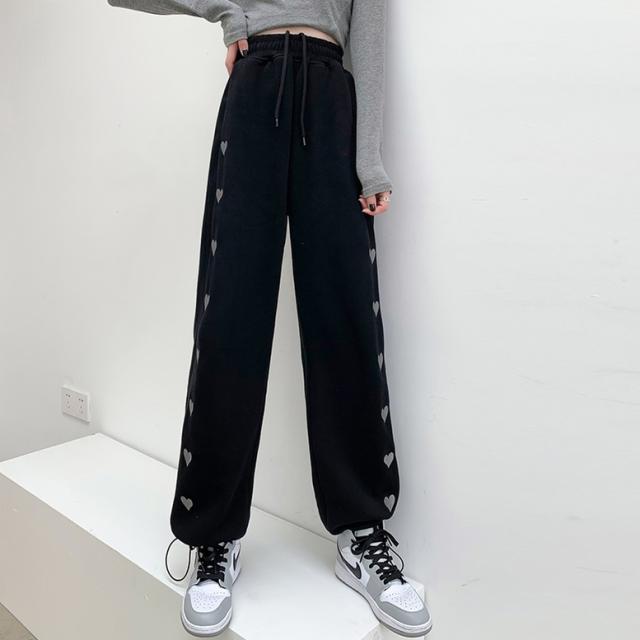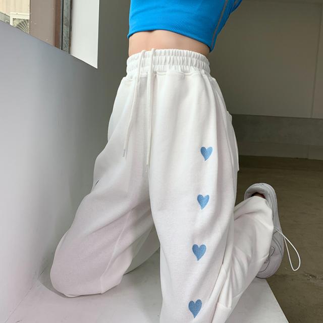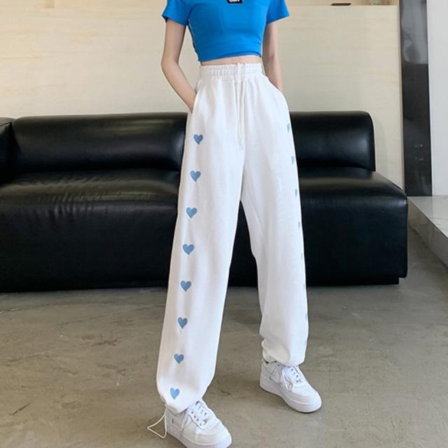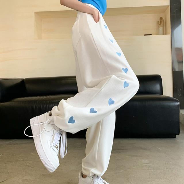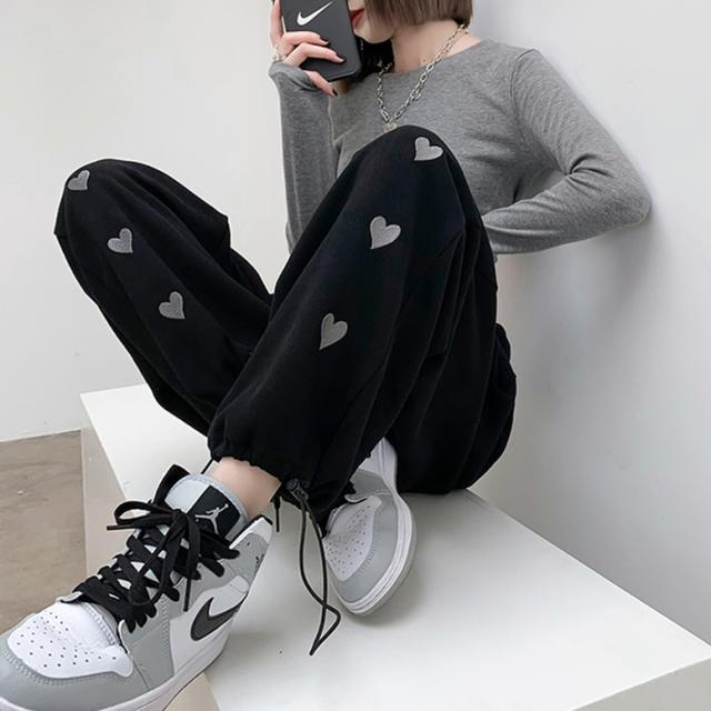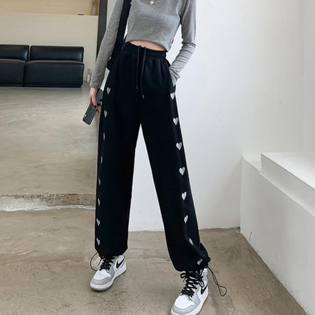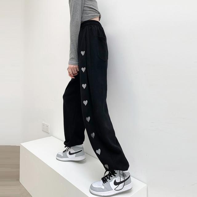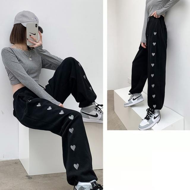 ハート柄のサイドラインが可愛いスウェットロングパンツ