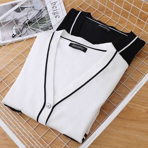 トップス ニット カーディガン バイカラー ライン 厚手 長袖 レディース ゆったり 前開き ボタン シンプル カジュアル ラフ ブラック 黒 白 ホワイト ルーズ ゆる リラックス 休日 お出かけ 公園 体型カバー 着痩せ 細見え 10代 20代 30代 40代 50代 春 秋 冬 お洒落 オシャレ かわいい 大人可愛い 色違い 映え SNS あったか 暖かい Vネック 抜け感 こなれ感 S М L XL レトロ アンティーク ヴィンテージ 学生 学校 スクール 制服 ОL 通勤 仕事 オフィス