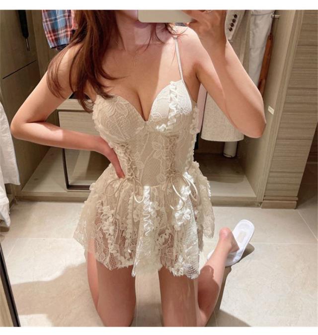 総レースとコルセット風デザインが華やかフェミニン♪