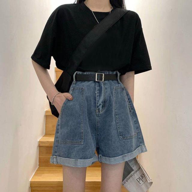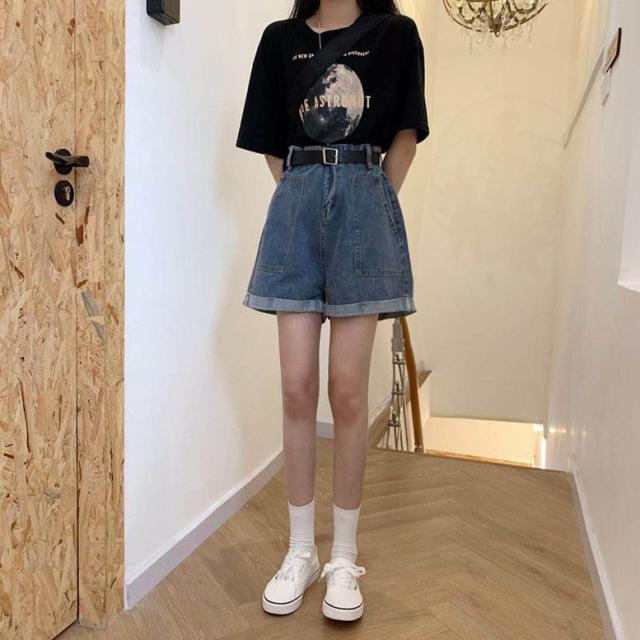 デニムショートパンツ ボトムス レディース ショートパンツ デニムパンツ フレアパンツ デニム ショート丈 ミニ丈 ポケット ベルト 青 ブルー 大人可愛い きれいめ 上品 エレガント ガーリー マニッシュ ルーズ キュート レトロ クール 大人女子 おしゃれ シンプル カジュアル