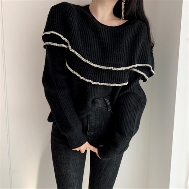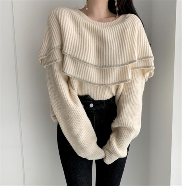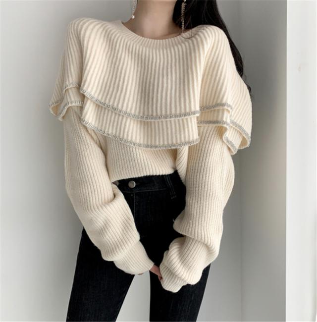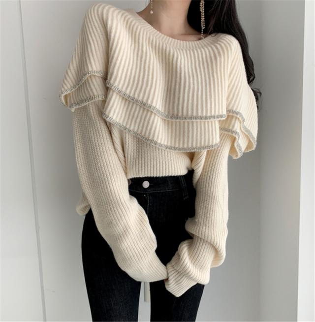 大きな2段フリルがおしゃれなニットトップスです。