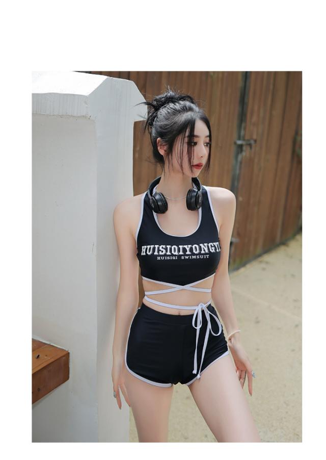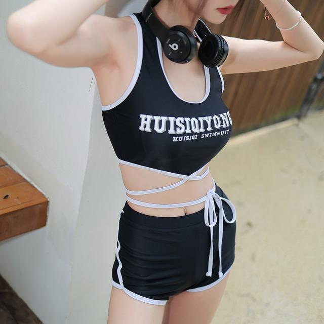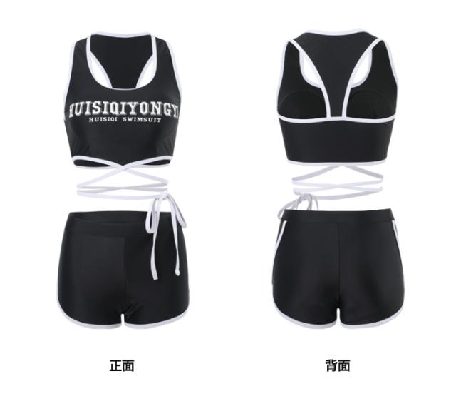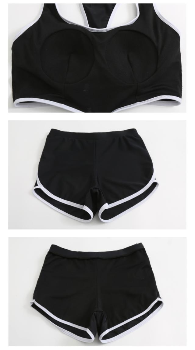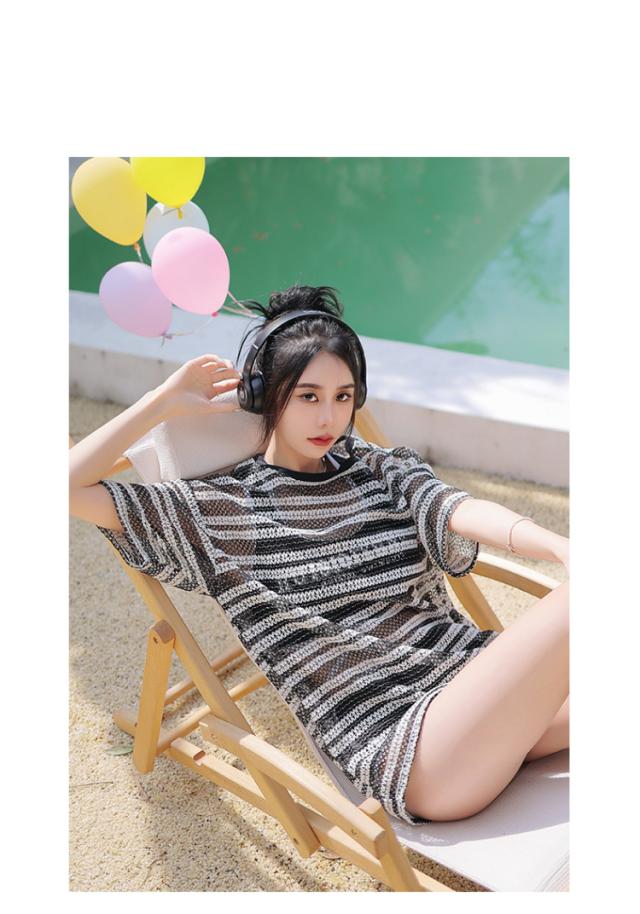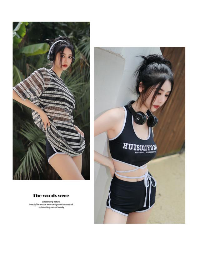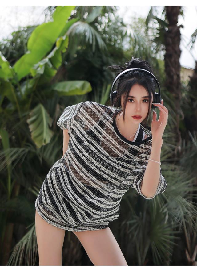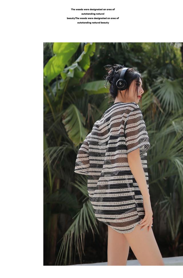 ブラックカラーのタンキニ水着とシースルーブラウスの3点セット。