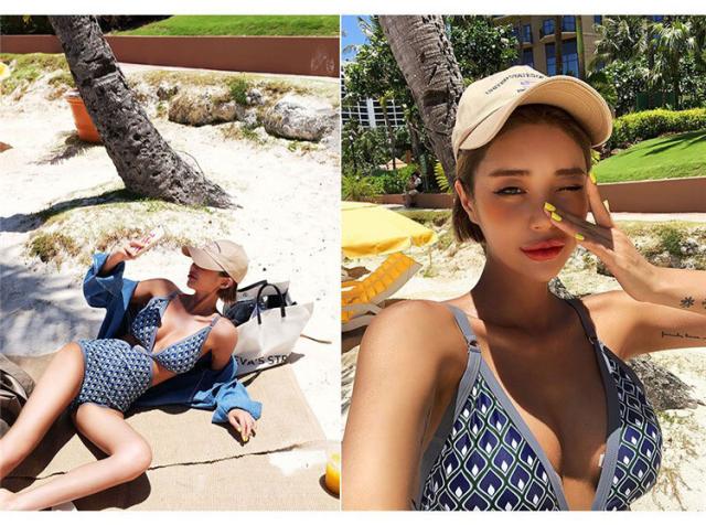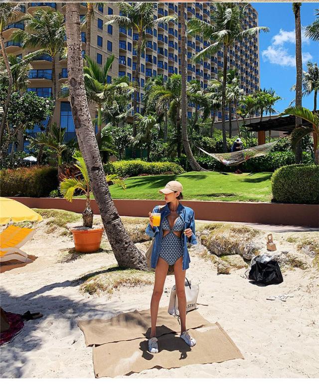 個性的なモノキニワンピース水着。