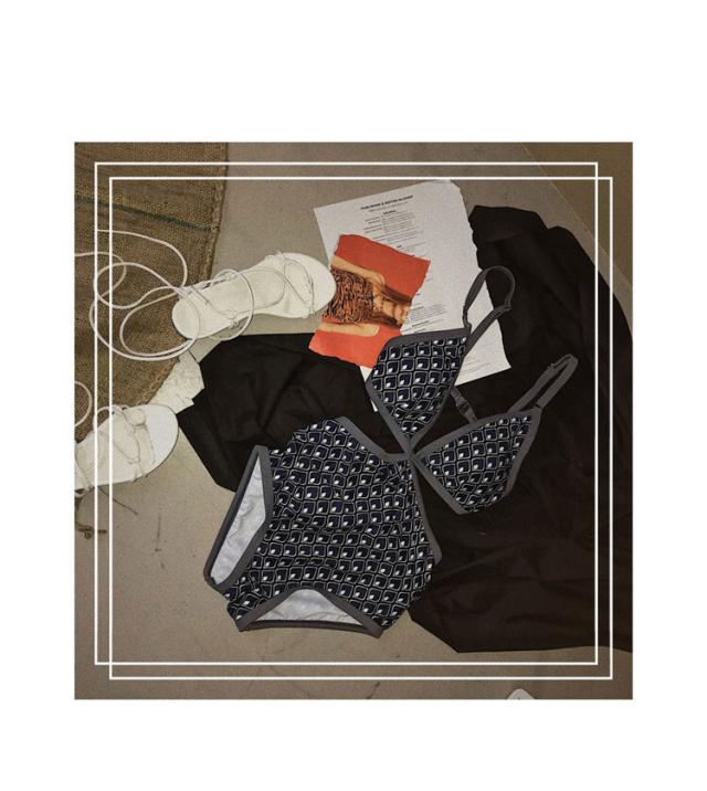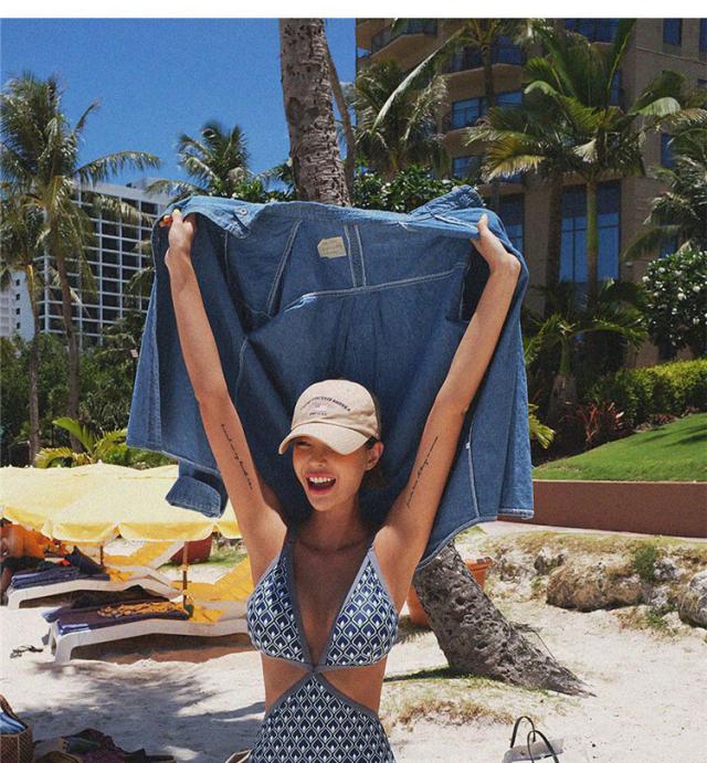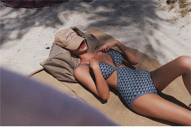 幾何学模様柄とウエストサイドのカットアウトデザインが