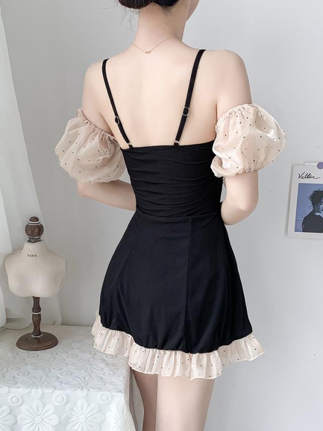 水着 スイムウエア レディース ワンピース水着 体型カバー水着 リボン オフショルダー オフショル 二の腕カバー フリル 水玉 ドット柄 シフォン ドッキング 胸元 谷間 谷間魅せ 盛れる かわいい 大人可愛い きれいめ セクシー sexy エレガント 清楚 大人 大人っぽい おしゃれ お洒落 レトロ 存在感 キュート ガーリー M L XL 黒 ブラック 無地 10代 20代 30代 40代 ママ 夏 海 ビーチ プール リゾート 旅行 モテ 美脚 脚長 着痩せ スタイルアップ 美スタイル 韓国