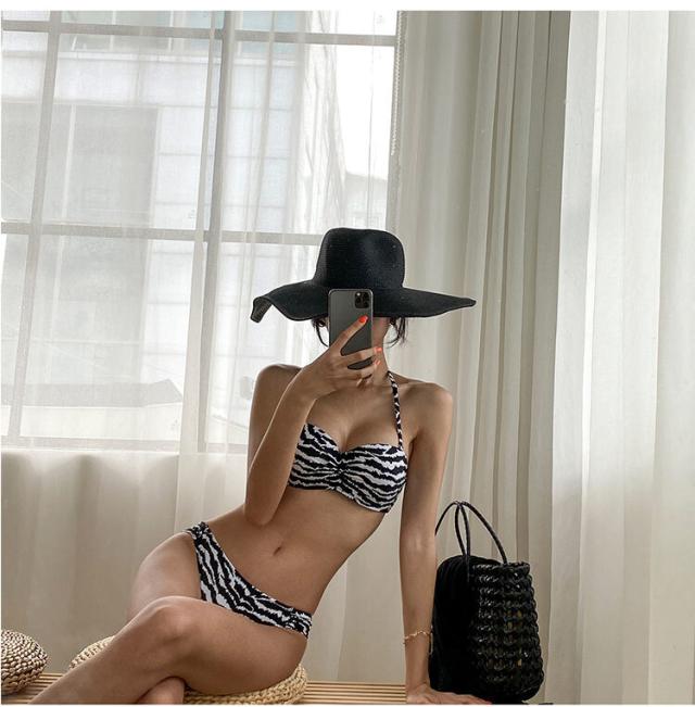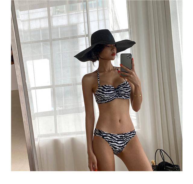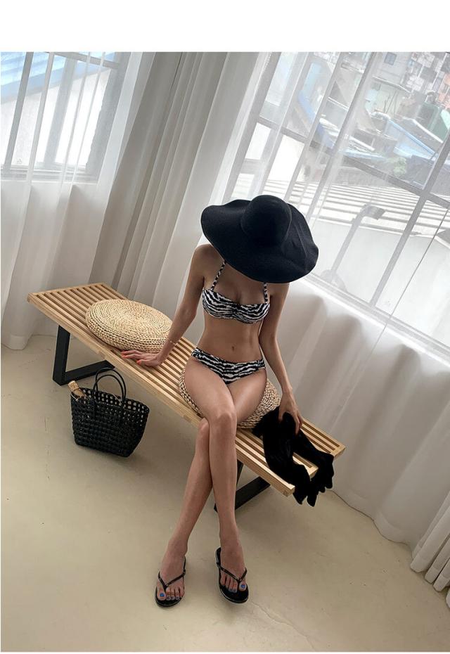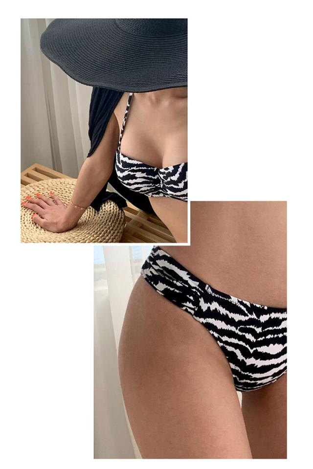 モノトーンゼブラ柄のシンプルビキニ水着。