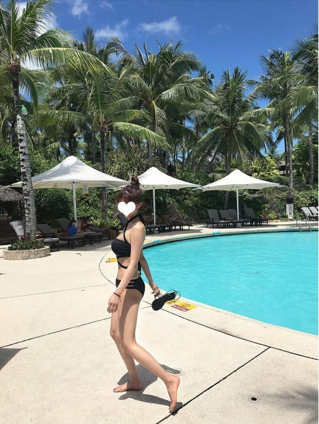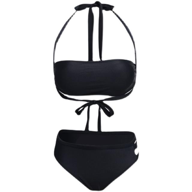 ブラックカラーのシンプルホルターネックビキニ水着。
