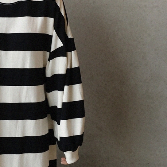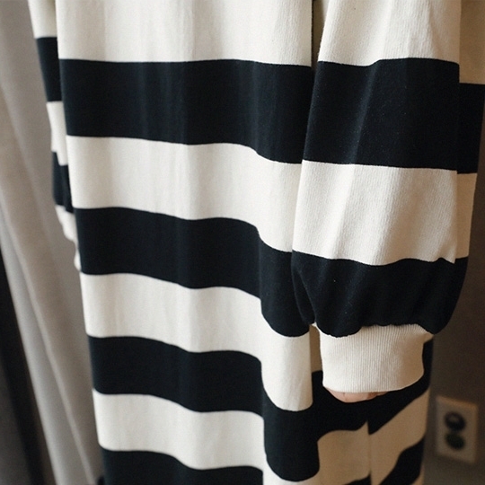 モノトーンの太めボーダーがカジュアルな切り替えワンピース。