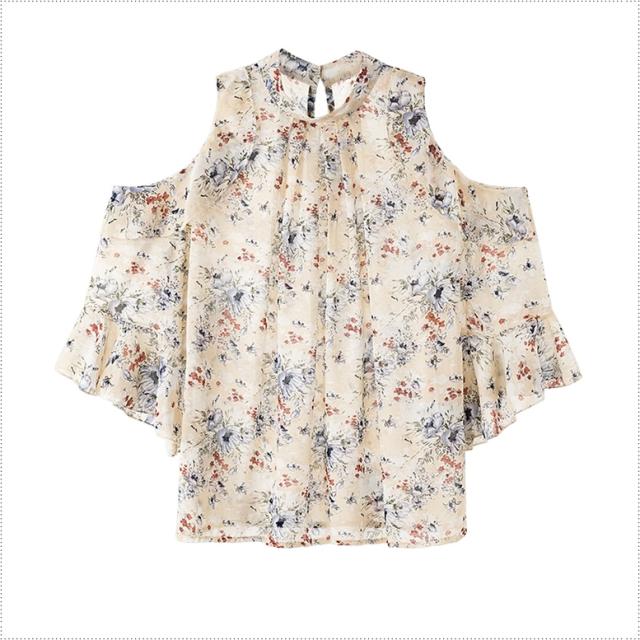 花柄オフショルブラウス トップス レディース 花柄ブラウス フリルブラウス オフショルダー ブラウス クルーネック 肩出し 7分袖 フリルスリーブ ボタニカル柄 タックブラウス シャツ シフォンブラウス ベージュ 大人可愛い きれいめ 上品 エレガント ガーリー ルーズ