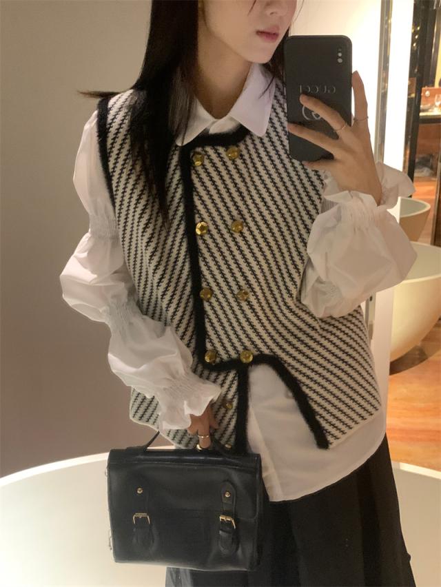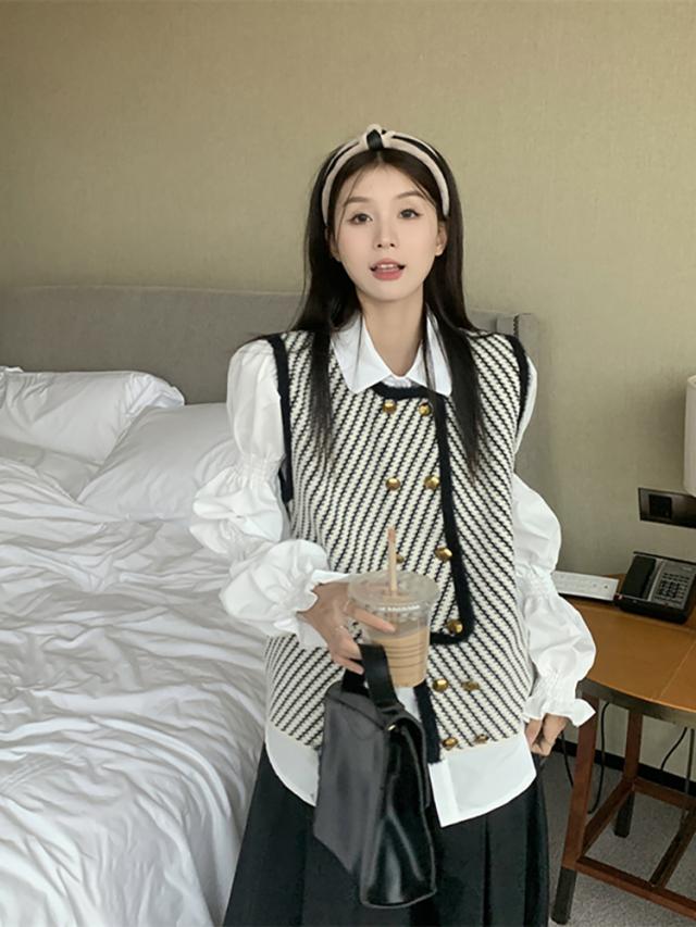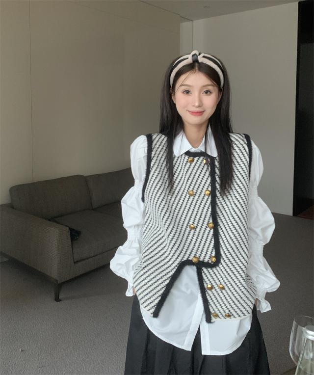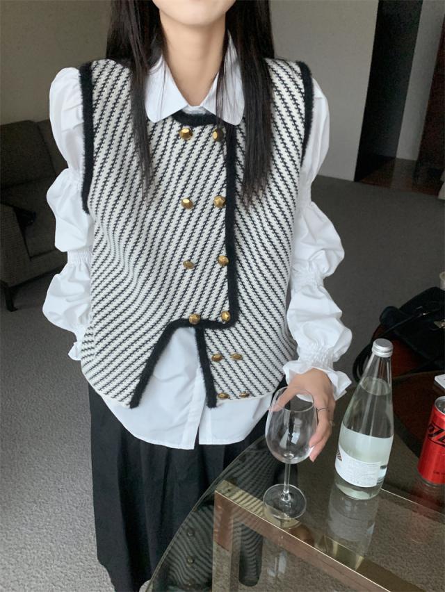アウター トップス レディース ベスト 袖なし ラウンドネック アシンメトリー メタルボタン 金ボタン ストライプ モノトーン 大人可愛い きれいめ 大人 上品 おしゃれ お洒落 かっこいい こなれ感 抜け感 ワンサイズ フリーサイズ 白 ホワイト 黒 ブラック 春 秋 冬 20代 30代 40代 50代 ママ オフィス ビジネス OL 通勤 デート お出かけ 女子会 プレゼント ギフト 着回し 重ね着 韓国 オルチャン 楽ちん
