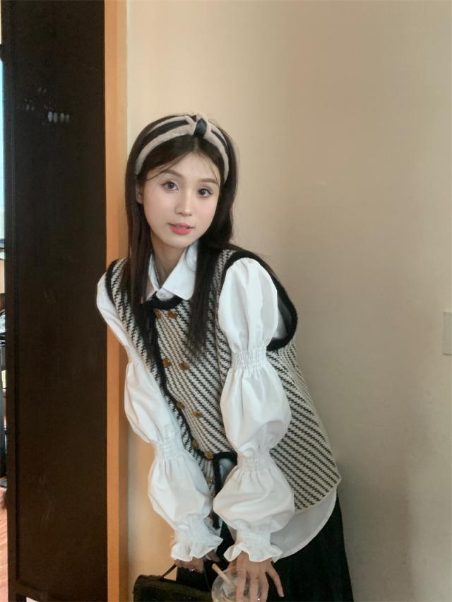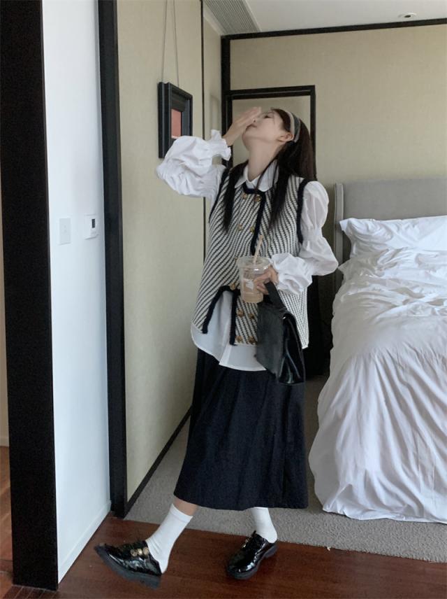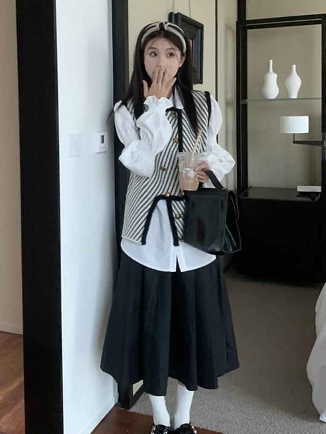 モノトーンストライプ柄ベスト。