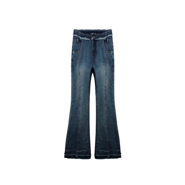 ウエスト周りと裾に2重に入ったダメージ加工のフリンジがおしゃれ◎