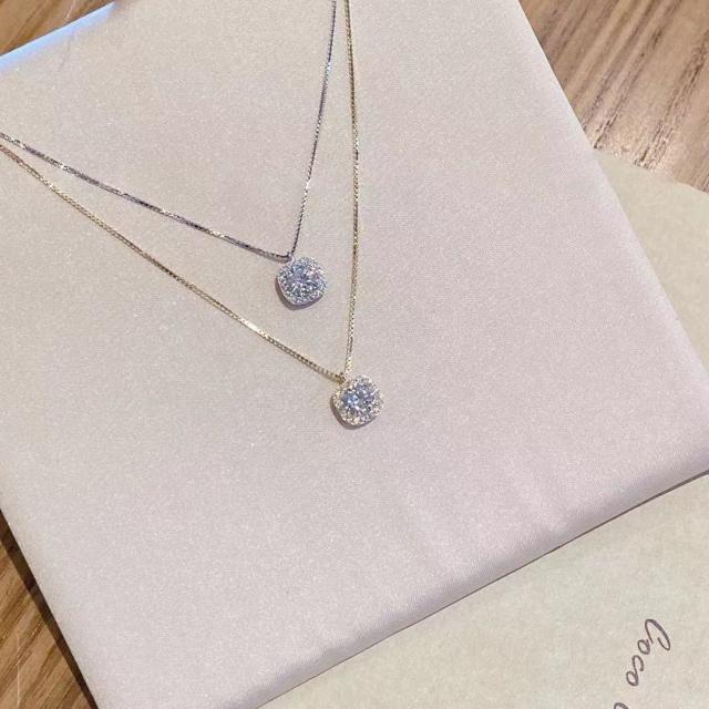 ネックレス レディース ペンダント シルバー 銀色 ゴールド 金色 スクエアチャーム ビジュー キラキラ チェーン 鎖骨 45cm ジルコン かわいい 大人可愛い きれいめ シンプル 大人 上品 おしゃれ お洒落 大人女子 クール エレガント フェミニン 繊細 存在感 オフィス ビジネス