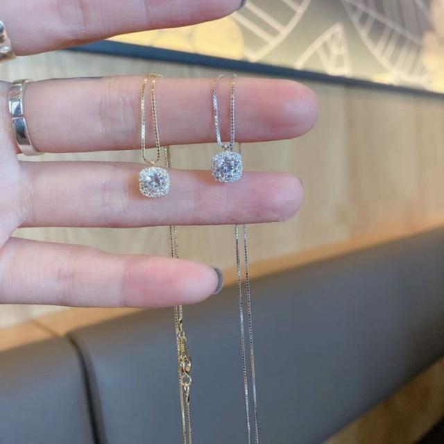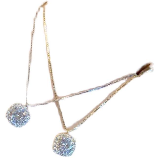 ネックレス レディース ペンダント シルバー 銀色 ゴールド 金色 スクエアチャーム ビジュー キラキラ チェーン 鎖骨 45cm ジルコン かわいい 大人可愛い きれいめ シンプル 大人 上品 おしゃれ お洒落 大人女子 クール エレガント フェミニン 繊細 存在感 オフィス ビジネス OL 通勤 学生 通学 デート お出かけ 女子会 休日 パーティー イベント 旅行 ギフト プレゼント 定番 モテ 普段使い 韓国 オルチャン