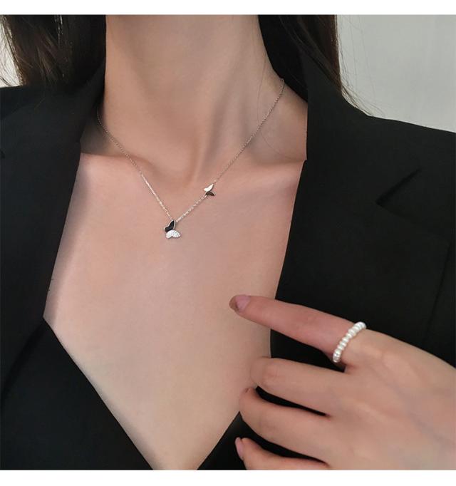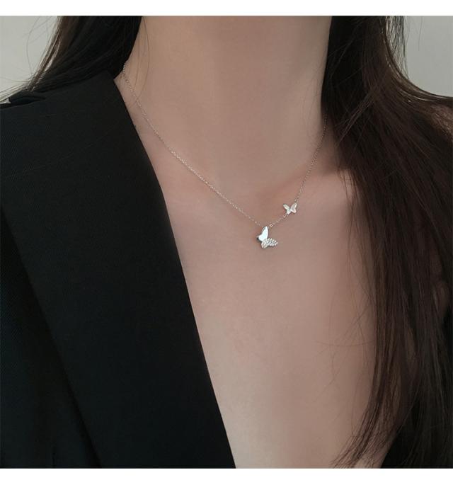 アクセサリー ネックレス レディース ペンダント シルバー 銀色 バタフライチャーム ダブル 蝶々 ちょうちょ ビジュー キラキラ チェーン 鎖骨 43cm ジルコン かわいい 大人可愛い きれいめ シンプル 大人 上品 おしゃれ お洒落 大人女子 クール エレガント フェミニン キュート ガーリー ラブリー 繊細 存在感 オフィス ビジネス OL 通勤 学生 通学 デート お出かけ 女子会 休日 パーティー イベント 旅行 ギフト プレゼント 定番 モテ 普段使い 韓国 オルチャン プチプラ