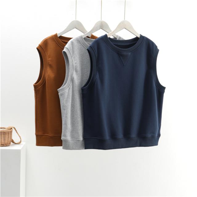 トップス ベスト 3色 スウェット レディース ラウンドネック ノースリーブ オシャレ お洒落 かわいい 大人可愛い ガーリー 10代 20代 30代 40代 50代 着回し 重ね着 シンプル カジュアル ラフ ジレ チョッキ アクセント 無地 グレー 灰色 ネイビー 紺 ブラウン 茶色 華奢