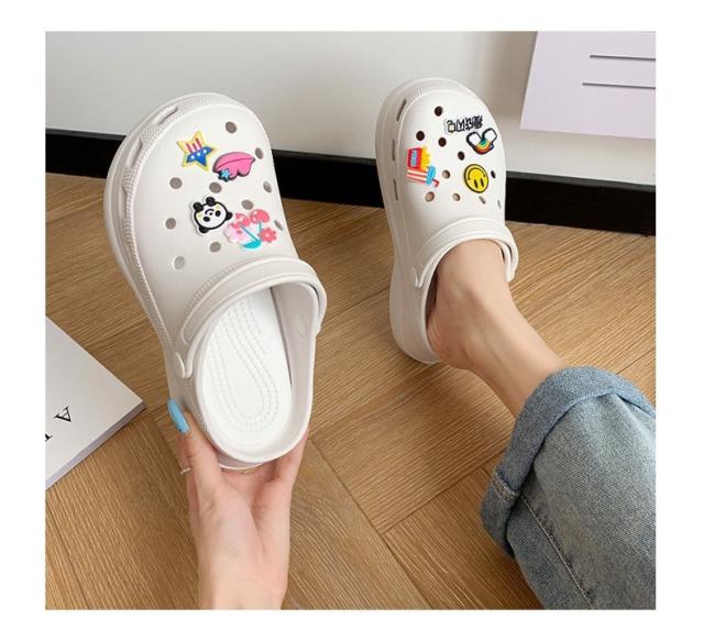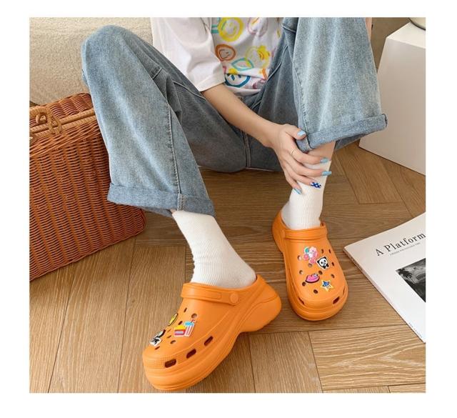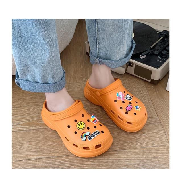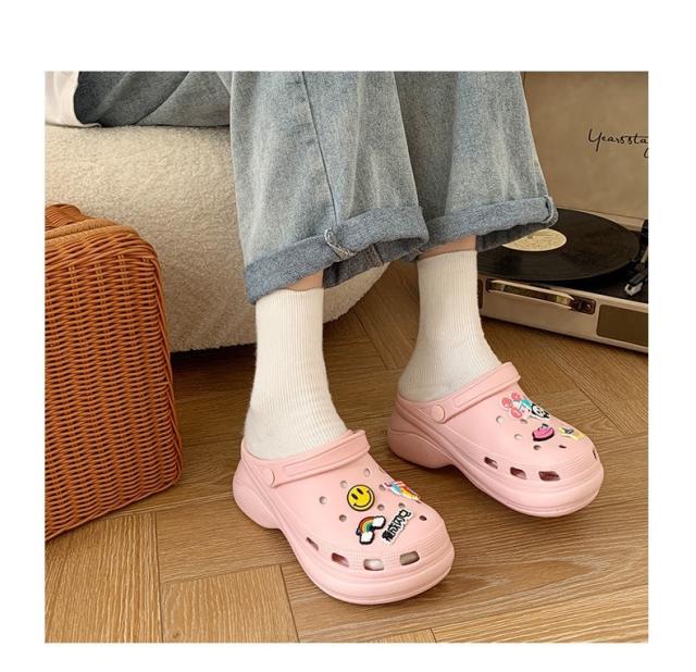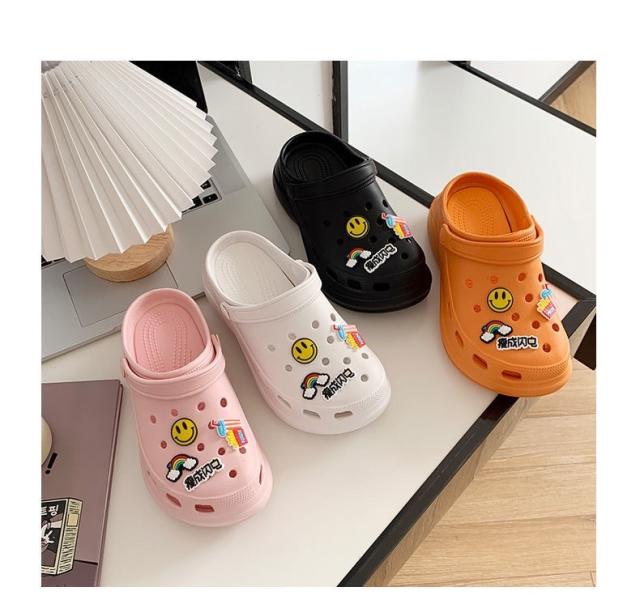靴 サンダル 4色 ラバー クロックス デコ シューズ レディース かわいい 大人可愛い 韓国 トレンド 流行 ガーリー フェミニン 個性的 個性派 量産 地雷 映え SNS インスタ 10代 20代 30代 40代 無地 黒 ブラック 白 ホワイト ピンク オレンジ カラバリ 大人女子 こなれ感 主役