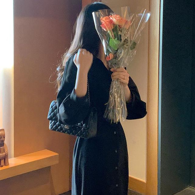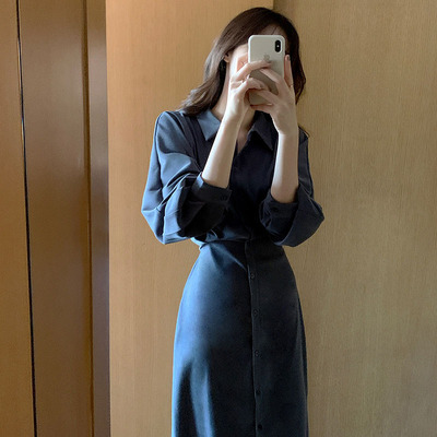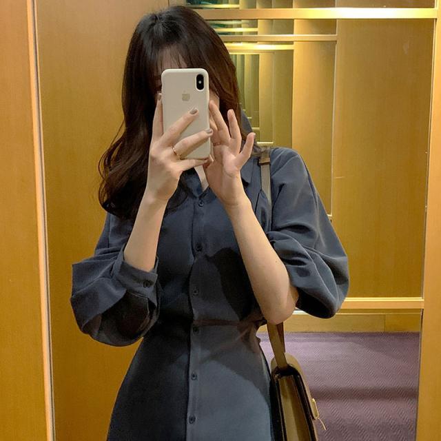 ワンピース 3色 タイト スリム ロング丈 レディース オシャレ お洒落 かわいい 大人可愛い 上品 きれいめ エレガント 高級感 長袖 ロング丈 ハイウエスト 無地 黒 ブラック ネイビー 紺 ベージュ くすみカラー 大きいサイズ S М L XL 春 秋 冬 カジュアル 脚長 美脚 体型カバー 着痩せ 20代 30代 40代 50代 ふんわり 細身 襟付き 主役 モテ デート 女子会 ショッピング 前開き ボタン ウエストマーク リボン バックデザイン 新作 2022 アンティーク ヴィンテージ
